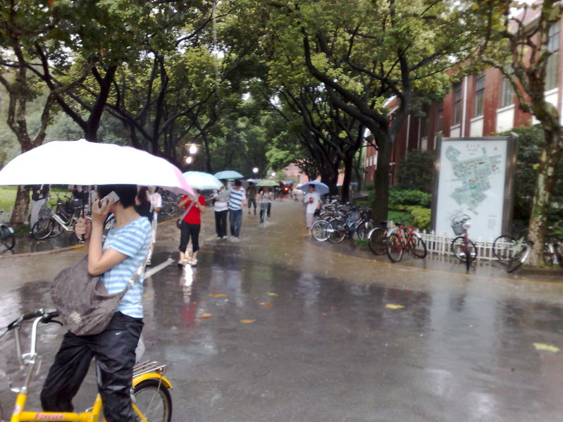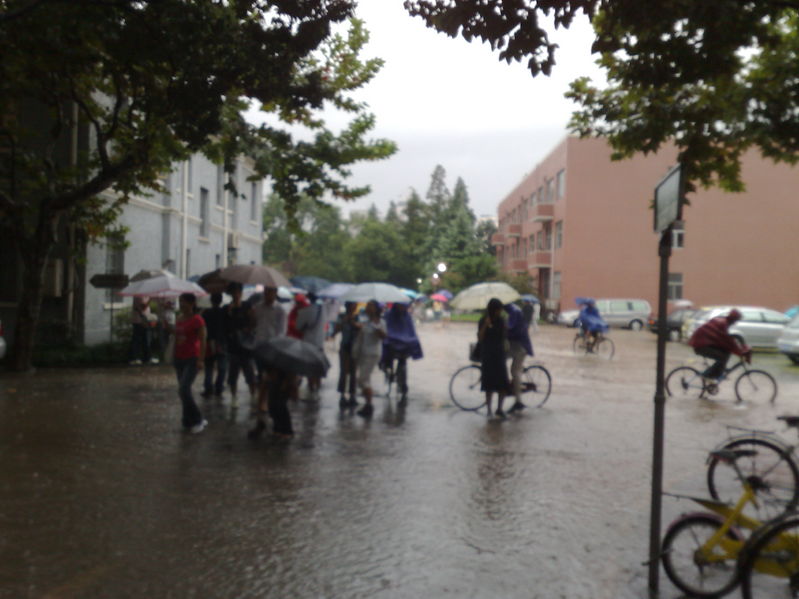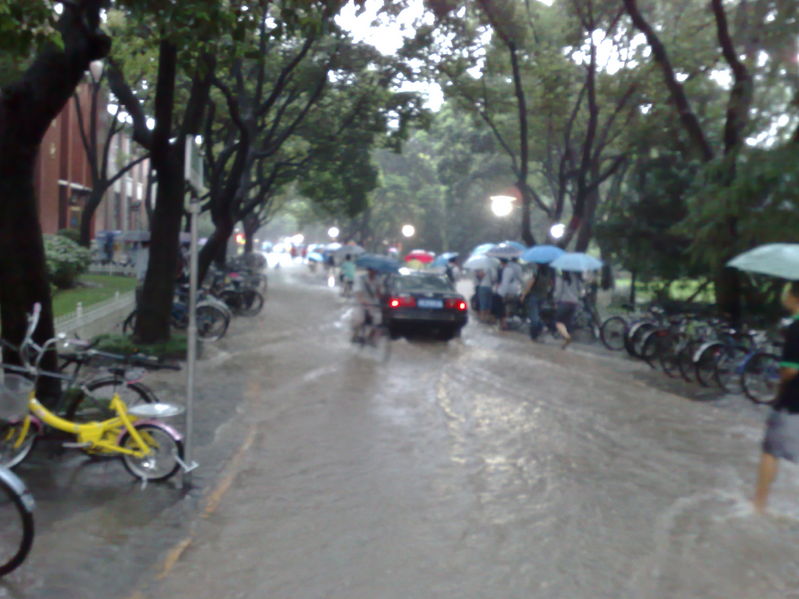 你看这复旦校区外一点积水都没有,校内就有情趣了~