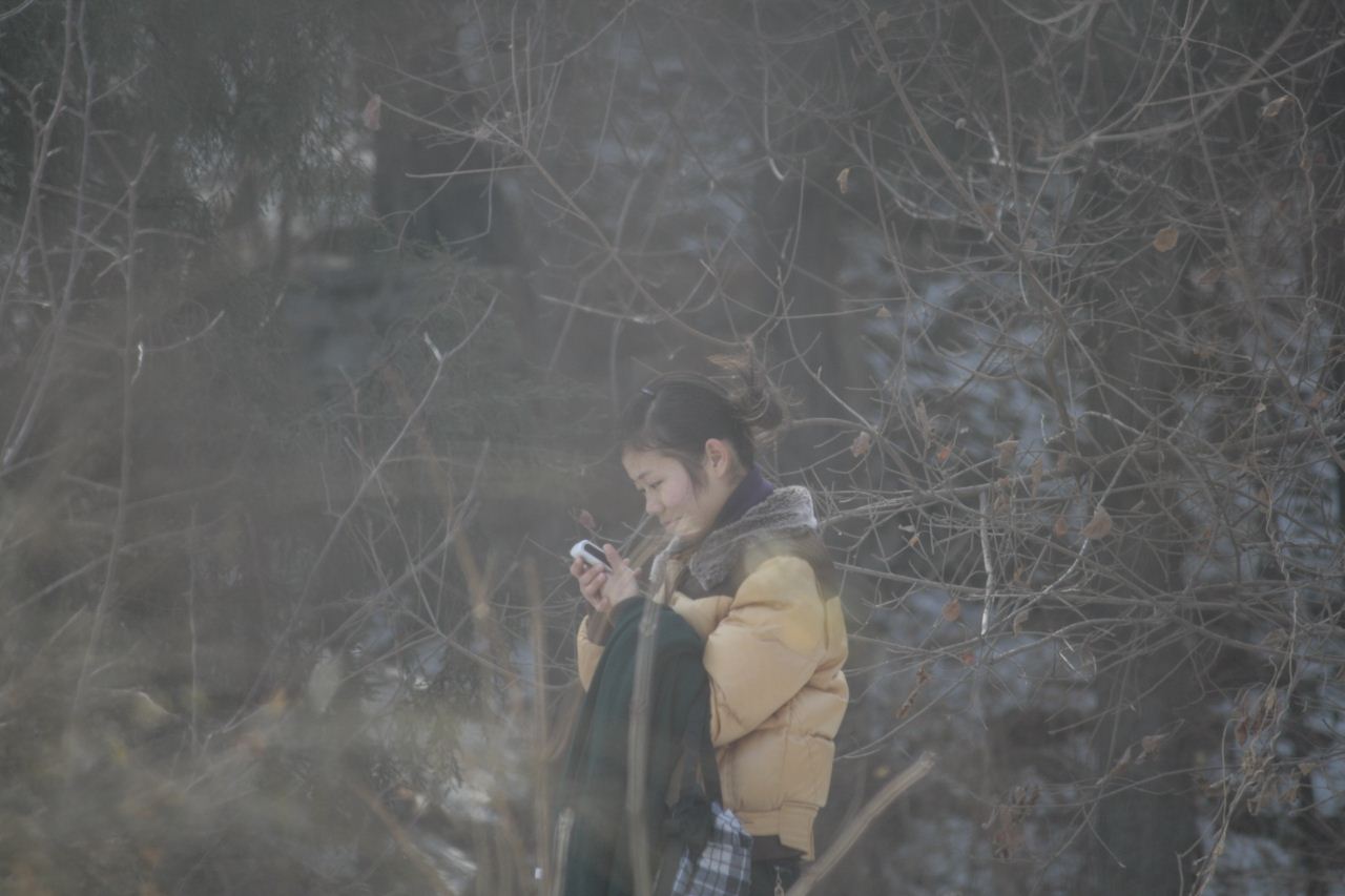 这天上午先去了北大,找小祥祥,顺便看了看啥叫未名湖啥叫水塔。等他的时候研究了下长焦,我发现长焦要么拍人要么拍鸟要么就是偷拍。于是偷拍了一个在自拍的小姑娘。。。