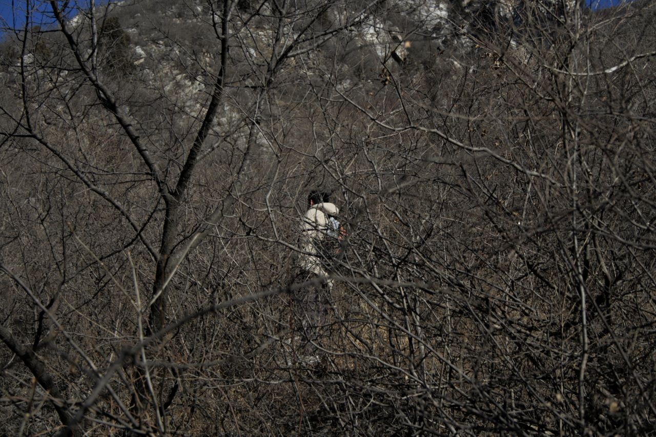 往箭扣的路十分的难走,有两处塌方的城墙,要从几乎90度的断壁上爬下去