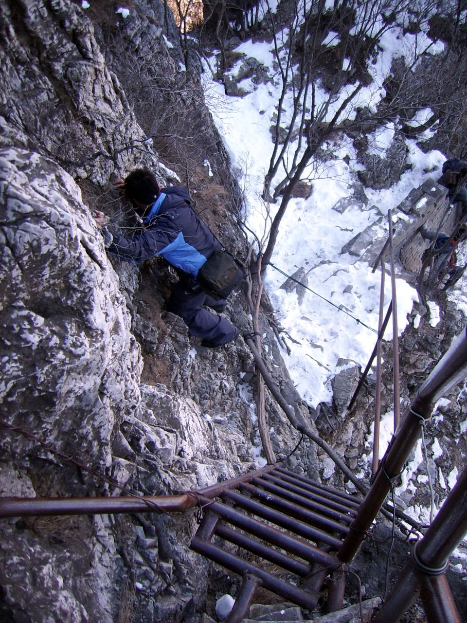 还有一个传说中的楼梯,本来是满好走的,可是后来楼梯下面的石头都风化掉了,于是就成了个悬空的楼梯。后来有管理员之类的人弄了几根树枝把楼梯和旁边还没风化的石头搭了起来,但是会站在旁边阻止游客过去,除非你跟他保证生死自负,毕竟稍微一不小心基本上就把命给搭上了。。。可是这天我们并没有见到那个传说中的管理员,可能是淡季的时候他窝到有暖气的地方去了吧。。。
