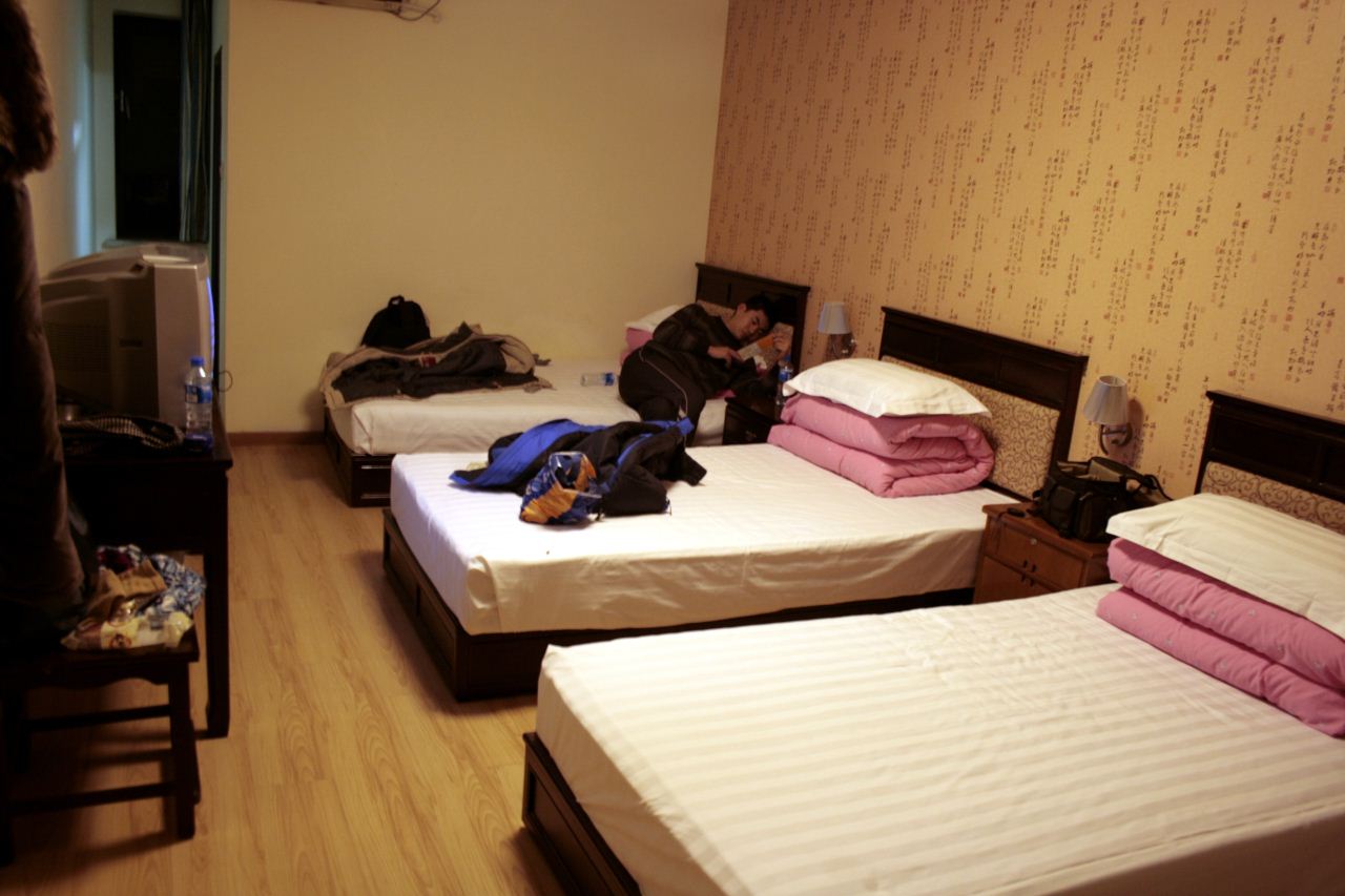 吃好饭就去宾馆了,在灯市口附近,一条胡同里,由青年旅社改建的,标间加个床209,给了我们个三人间,干干净净,反正睡个觉就走人。。。